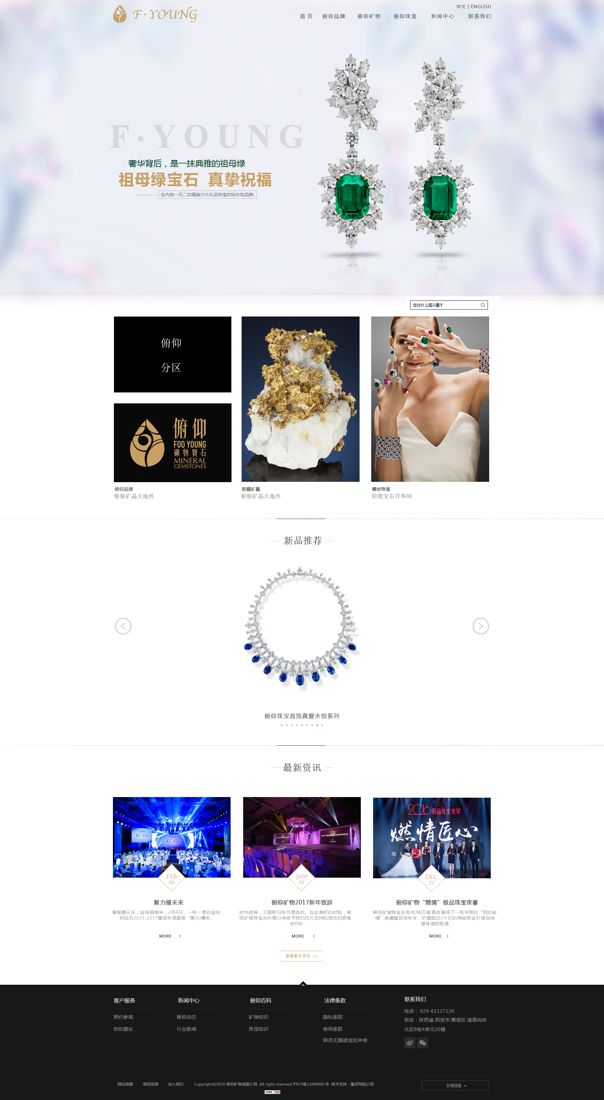 Project Description 俯仰矿物宝石收藏馆位于西安市高新区2015年年初开馆。近涵盖国内外知名矿区矿物,每一块都尽显“天然去雕饰”的自然艺术魅力。 2015年初,历经五年筹备的俯仰矿物宝石收藏馆终于开馆,馆内收藏了张军先生十多年的矿物臻品,涵盖国内外知名矿区矿物,每一块都尽显“天然去雕饰”的 自然艺术魅力;宝石是矿物的缩影,俯仰拥有祖母绿、红宝石、蓝宝石等名贵宝石,每一颗宝... Official website address 惠州http://www.fooyoung.com I want to share